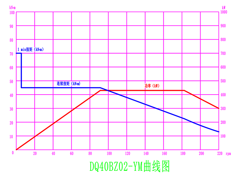 驱动方式 交流变频(AC VFD) 名义钻井深度(Φ114mm钻杆) 4000m 额定载荷 2250kN 供电电源 380(600)VAC/50Hz(可选60Hz) 主电机额定功率 430kW(continuous) 钴井扭矩 45kN·m 最大卸扣扭矩 70kN·m 主轴转速范围 0~220r/min 背钳夹持钻杆范围 86mm~206mm 泥浆通道 Ф75mm 泥浆通道循环压力 35MPa 上(遥控) 6 5/8"API REG 70MPa 下(手动) 6 5/8"API REG 70MPa 液压系统工作压力 14MPa 工作高度 6.0m 主体重量 12.5t 环境温度 -20℃~55℃(可选-45℃~55℃)